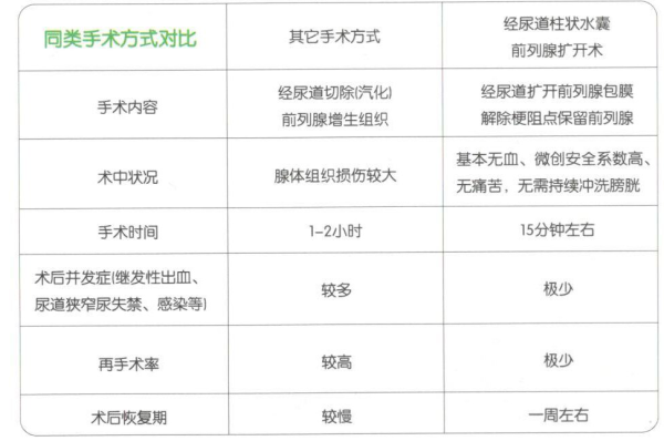 操作快捷,无痛苦:手术过程只需15-20分钟,过程几乎无出血或少量出血,无痛苦,无须持续冲洗膀胱。