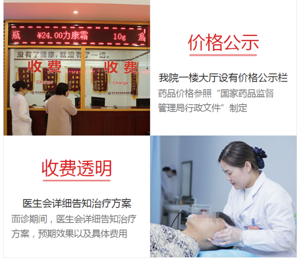 东莞肤康皮肤医院各项医疗收费都是统一按照市物价局所核定标准进行收取的,建立了完善的检查、督查制度,坚持做到公开、透明,严格根据患者的病情开药、制定治疗方案。为了维护医患双方的共同权益,我院在门诊大厅设立了价格公示牌、计算机触摸屏、电子滚动屏等,患者可放心到院就诊。