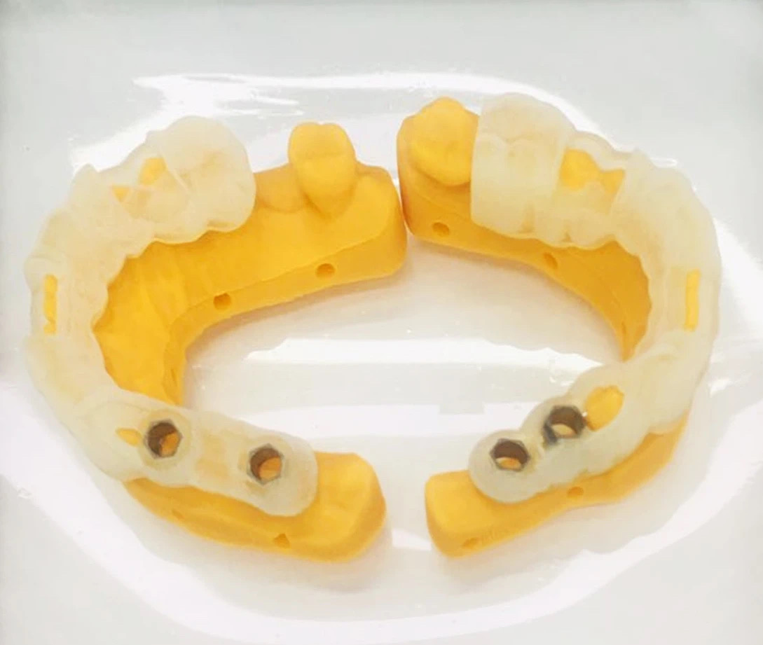口腔医生可以与使用CAD/CAM技术实现个性化的手术规划,以及3D打印手术导板、模型和器械,所有这些都是与特定的手术和病人相匹配的。一个临时的口腔修复体消除了多次手术的需要,这意味着与传统的治疗方式相比,患者可以以快得多的速度进行完整的牙科重建。