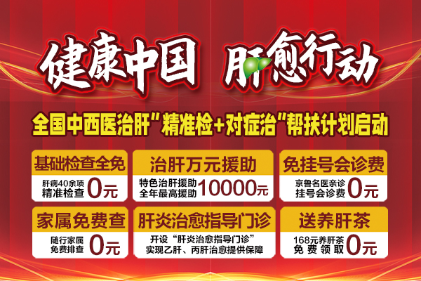 肝病治疗重点在于早发现、早治疗,明确病因,规范治疗!随着医疗水平不断提升,已经有研究证明,中西医结合治肝病更科学规范化,疗效也更为显著!为提高大家的肝脏健康意识,引导肝病患者找到正确的治疗方向,济南中医肝病医院喊出“健康中国·肝愈行动”的口号,推出全国中西治肝“精准检+对症治”帮扶计划!从专家、检查、治疗、养护等多方面提供相关援助,并开设“肝炎治愈指导门诊”,以实际行动助力肝病诊疗事业发展,提高乙肝治愈率!