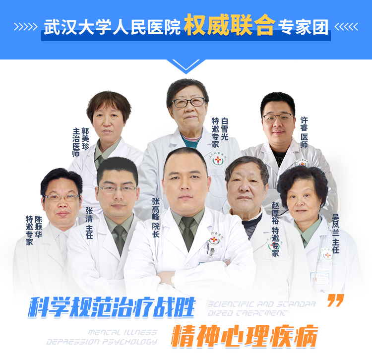 武汉同普精神心理医院诚聘邦华导医爱心专家团讲师精神卫士张清医生、湖北省人民医院陈振华教授、白雪光教授、赵厚裕教授联合北京、上海等地专科专家组成强大的专家团队,亲自坐诊为广大患者带来权威的诊治。