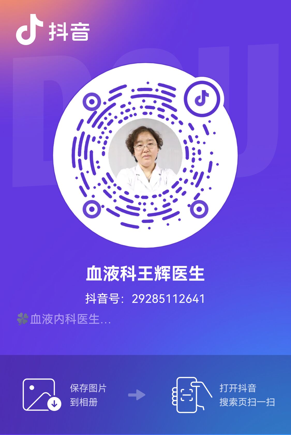 温馨提示:血液病等不得,想要了解王辉医生更多信息,可以在【抖音】搜索【血液医生王辉】或扫描上方二维码,如果有血液疾病问题想要咨询,可以直接【私信】,与王辉医生一对一沟通交流。