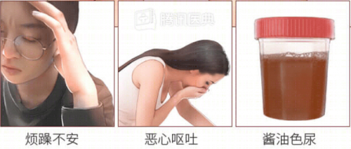 伴随症状:大多数患者可伴随着烦躁不安、冷汗淋漓、恶心、呕吐等症状。下腹胀痛 、无法排出尿液或尿液量很少,尿液可能呈酱油色、洗肉水色。