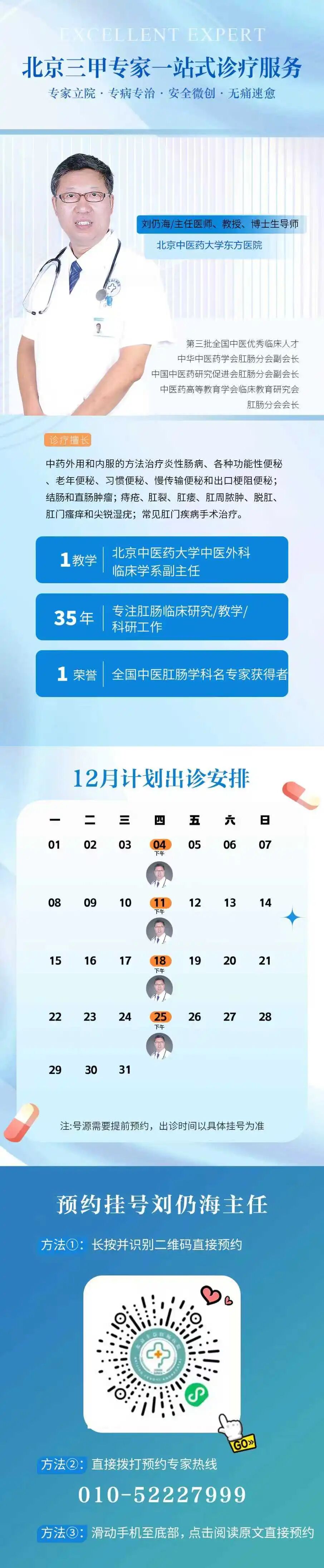 东方医院∣刘仍海教授12月4/11/18/25号下午在北京丰益肛肠医院出诊