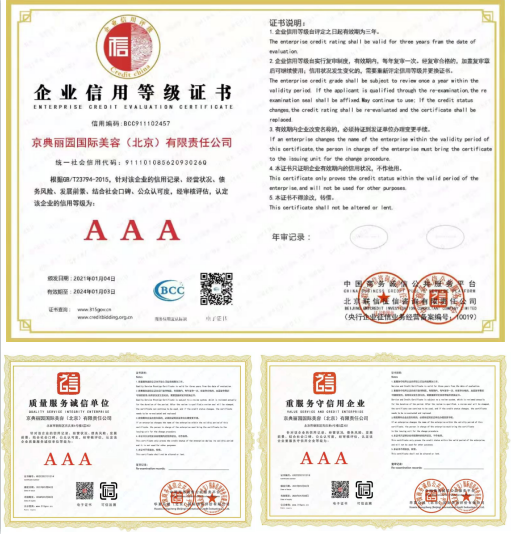 (京典丽园是国内美容行业唯一被授予3A级企业)