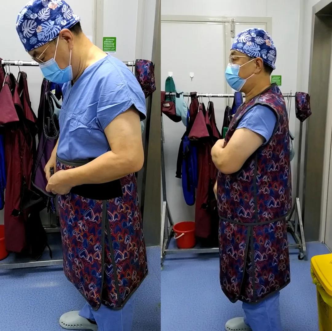 手术快开始了,许楠主任像往常一样穿上手术衣铅衣,洗手消毒。铅衣很重,主任用力将铅衣举过头顶,然后把
