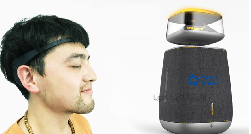 Ego减压脑波舱则是一套提供放松减压、助眠的智能心理应用系统。Ego以脑电生物反馈为核心技术,将脑电心理与全息立体投影、可升降磁悬浮、催眠脑波音乐、脑波情绪灯、语音识别等高新技术结合,以个人心理状态可视、可听、可交互的方式,实现助眠和放松减压功能。