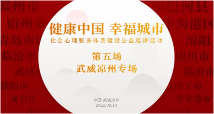 8月13日上午9点,由武威市凉州区和全国二十余个地区联合主办的“健康中国、幸福城市”全国社会心理服务体系建设公益巡讲活动第5场武威凉州专场即将拉开帷幕!
