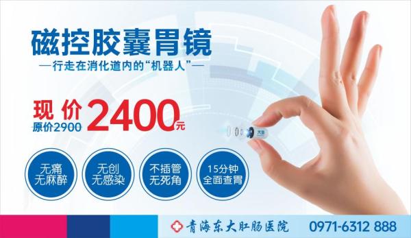 未雨绸缪永远能给我们应对突发事件留出缓冲空间,关注胃部健康,做好胃病预防,胃镜检查必不可少,青海东大肛肠医院的医生介绍,胃镜是早期筛查胃癌的黄金手段。说起胃镜,很多人谈镜色变,因为胃镜入喉式的检查让很多人“镜”而远之,好消息好消息,青海东大肛肠医院胃镜检查不怕不怕了,自2021年青海东大肛肠医院新进磁控胶囊胃镜,一改传统的胃镜检查方式,让胃镜检查变得和喝药一样简单,只要吞服一粒胶囊大小的仪器,15~20分钟即可完成检查,方便、快捷、高效。而且为提高胃癌的早期筛查率,青海东大肛肠医院特在国际护胃日推出磁控胶囊胃镜优惠活动,将原价2900元的磁控胶囊胃镜检查降至2400元,直降500!心动不如行动!
