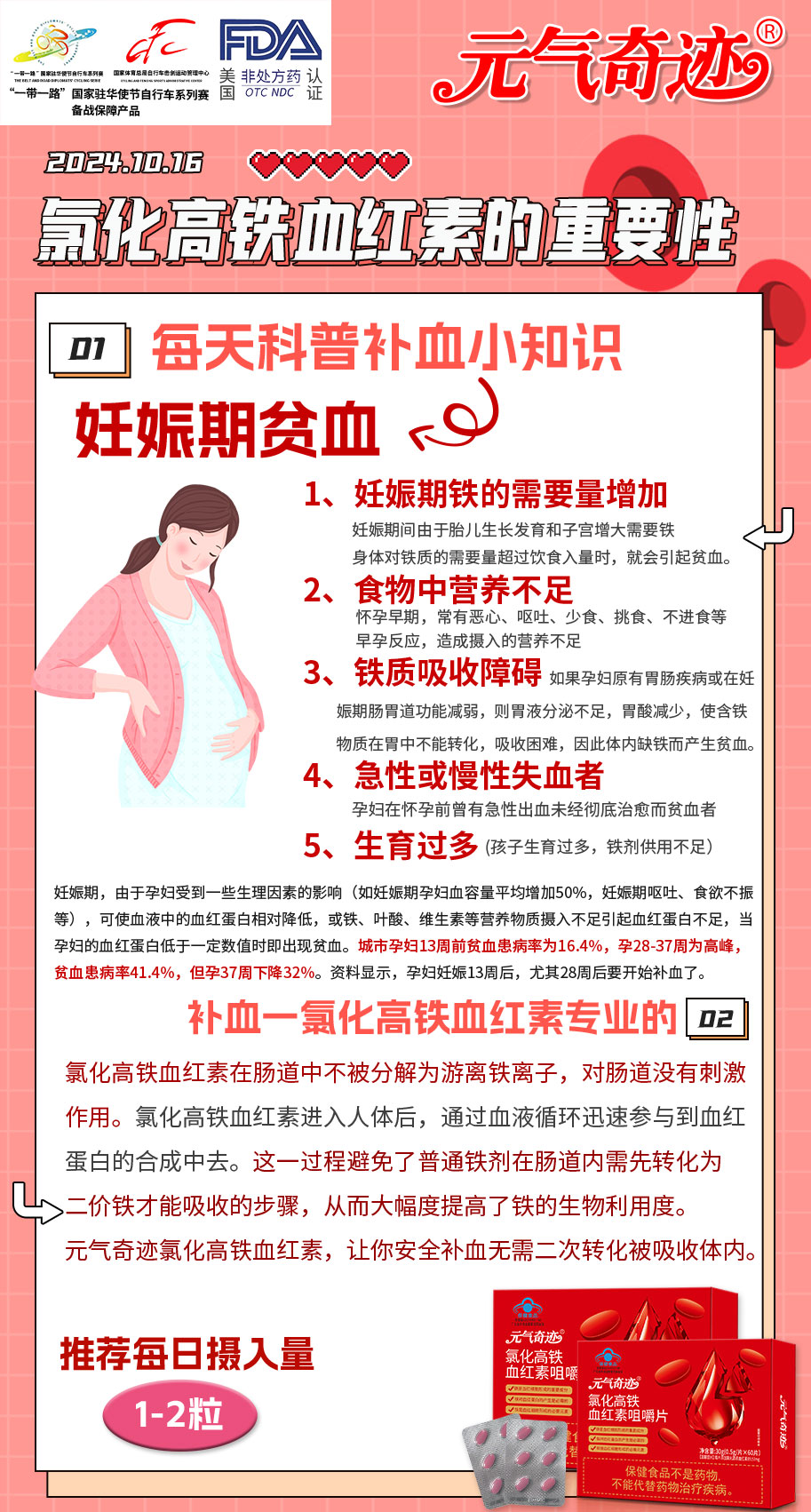 元气奇迹氯化高铁:妊娠期贫血优选补铁解决方案
