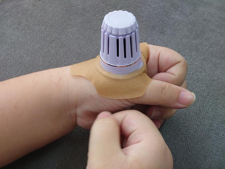 贴在手上艾灸,继续干活或者玩手机、看书都一点不影响。