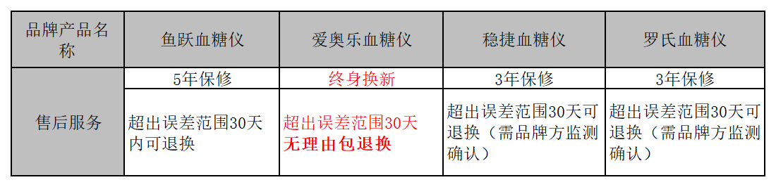 得益于爱奥乐友好的售后政策,血糖仪用户将会更有保证:爱奥乐推出“60天无理由退换+终身换新”政策,用户无需提供静脉血报告即可退换误差超标的设备。相比之下,其他品牌退换流程复杂,需医院报告且扣减试纸费用。此外,爱奥乐支持终身免费维修,即使停产机型也可旧换新,彻底解决用户后顾之忧。