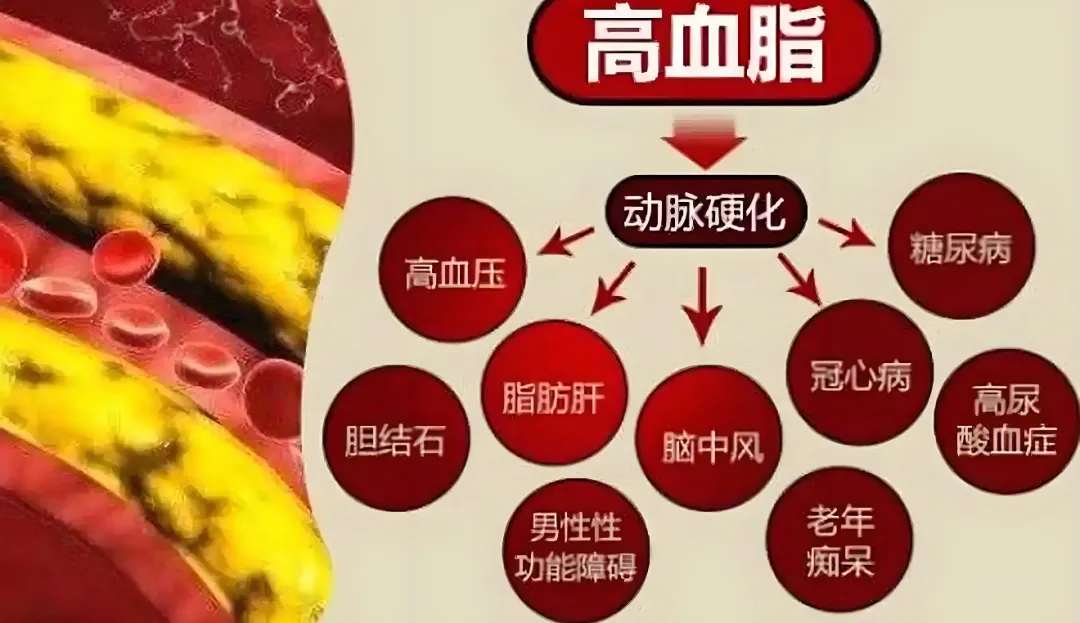 当患者的胆固醇和甘油三酯过高,易形成动脉粥样硬化,堵塞血管。患者可能引发心梗、脑梗、脂肪肝、胰腺炎等。