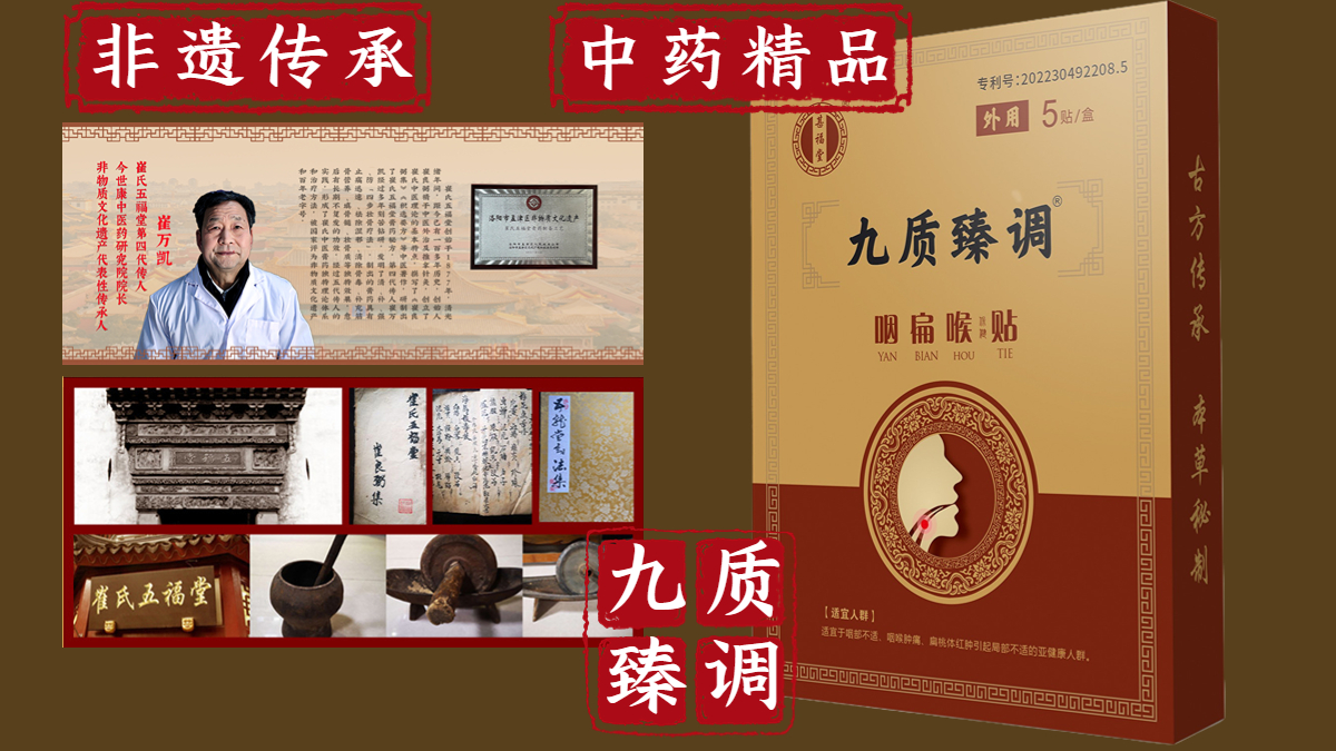 每一个非物质文化遗产品牌的背后,都有一段不寻常的历史。这些历史中包含着的各种文化形态,又被发扬光大、传承。是消费者认知中一个独特的标签,也是产品、品牌形象中弥足珍贵的元素。九质臻调咽扁喉贴之所以不同于其他企业产品,是因为它在漫长的传承过程中,积累了独特的文化内涵和先人智慧。