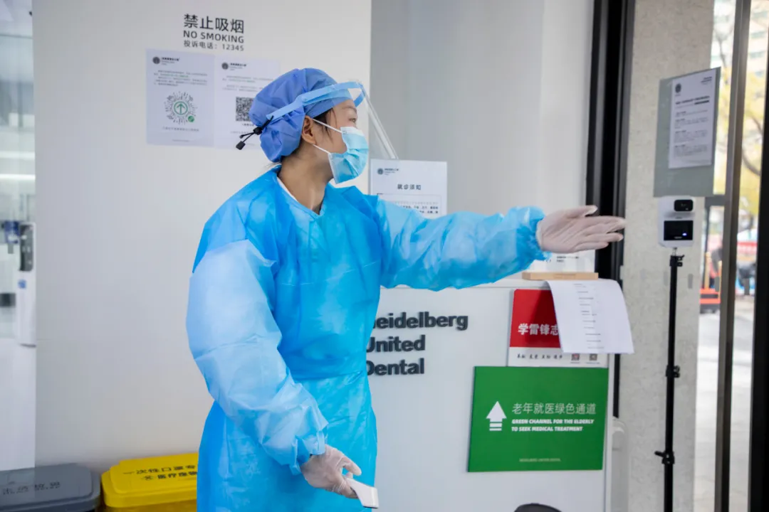 在进行所有口腔诊疗操作之前,海德堡联合口腔所有医护人员必须佩戴口罩,做好手消毒,并且穿戴好防护服,确保顾客就诊的全面安全。