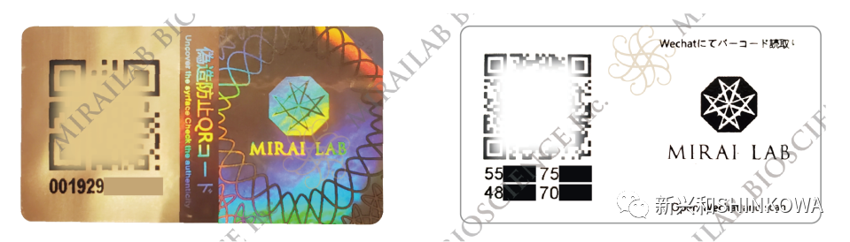 也正是因为如此,市场上随着而来的也出现了大量假冒伪劣的“MIRAI LAB”产品。这些假冒产品的来源及成分不明且质量低劣,对消费者造成了不小的损害。MIRAI LAB为了维护广大消费者的利益,对产品防伪系统进行了全面升级,产品上的防伪标签外层为金色商品追踪编码,揭开后内层为白色防伪码,消费者在购买MIRAI LAB系列的NMN产品后,如果不确定真假的话可以揭开金色外层进行扫码验证,确认买到的是否为正版商品。