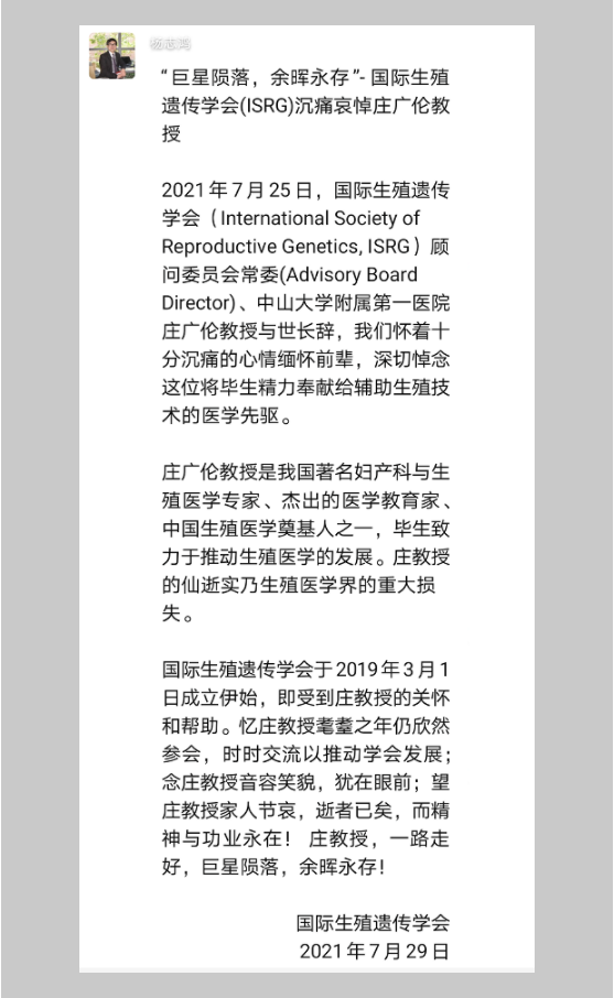 “巨星陨落,余晖永存”,泪别生殖界泰斗庄广伦教授